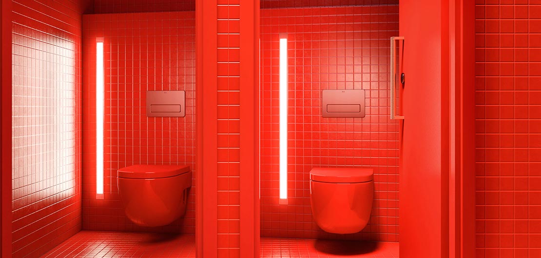 Znajdujący się na pierwszym piętrze pawilon Eiffel obejmuje salę konferencyjną na 300 osób i jest pierwszą przestrzenią na tej wieży, w której wykorzystano pełną gamę produktów Roca, w tym ceramikę sanitarną, baterie, elementy instalacji i przyciski sterujące. Pawilon otaczają ściany w kolorze jasnej czerwieni weneckiej, z którą doskonale kontrastuje biel pisuarów, toalet i umywalek Roca. Ten wyrazisty odcień ścian był pierwotną barwą całej wieży, o czym wielu odwiedzających nie wie. Fakt ten zainspirował nadzorującego projekt architekta Alaina Moattiego, który postawił na dialog między czerwienią i bielą, wykorzystując kontrast zaokrąglonych i prostych linii umywalki Amberes i toalety Meridian w wersji podwieszanej.