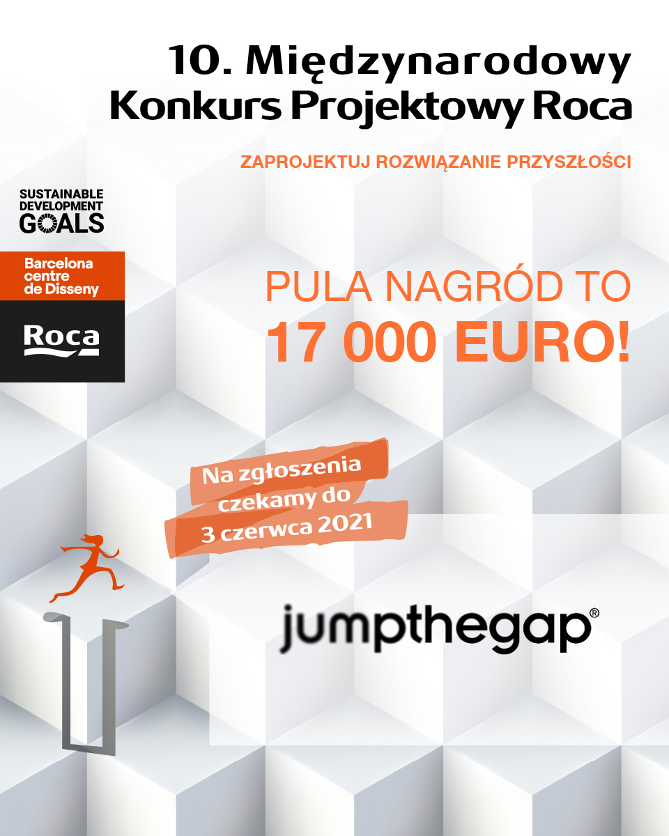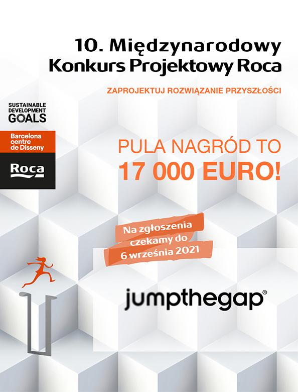 to międzynarodowy konkurs projektowy promowany przez Roca od 2004 roku. Głównym celem jumpthegap® jest zaoferowanie międzynarodowej platformy dla młodych utalentowanych architektów i projektantów. Na tej platformie profesjonaliści z zakresu architektury i projektanci oraz studenci z całego świata mogą rozwijać i prezentować swoje talenty, tworzyć kreatywne rozwiązania dla przestrzeni łazienkowej.Nowe spojrzenie jumpthegap® w przyszłość wywodzi się z przekrojowych wyzwań, jakie stawia Agenda ONZ na rzecz zrównoważonego rozwoju do roku 2030 w zakresie opieki zdrowotnej i higieny, ochrony planety, poszanowania różnorodności lub równego dostępu do postępu technologicznego. W związku z tym konkurs stanowi wyzwanie dla nowych pokoleń projektantów i architektów, aby wymyślili rzeczywiste i innowacyjne rozwiązania dla przestrzeni łazienkowej, zarówno publicznej, jak i prywatnej, z prawdziwie społecznym, integracyjnym i zrównoważonym nastawieniem. Ostatecznym celem dla wszystkich uczestników jest zaprojektowanie produktu lub usługi, które rozwiązują którekolwiek z wyzwań zawartych w Agendzie 2030, zapewniają innowacyjną wartość dodaną i są technologicznie wykonalne.